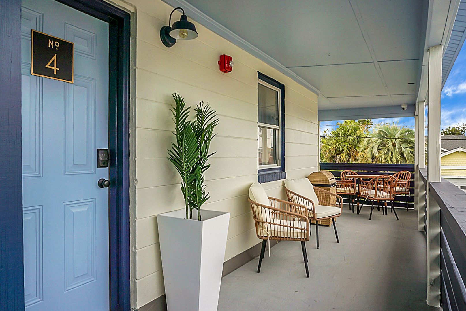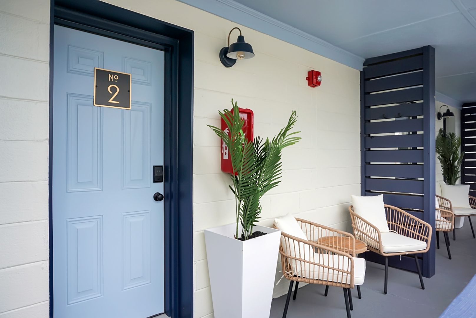 Experience coastal luxury in our newly renovated 2-bedroom suite at our charming beach motel. Each bedroom features a plush queen bed along with a smart streaming TV and a mini-split system for personalized comfort. The spacious living area also includes a sleek pullout sofa with a queen bed, a mini-split system, and an open layout that seamlessly integrates the dining and lounging areas. Enjoy the convenience of a full-size fridge, microwave, and Keurig coffee maker for light meal prep. Step outside to your private front porch with a cozy seating area, perfect for relaxing after a day at the beach or planning your next adventure.