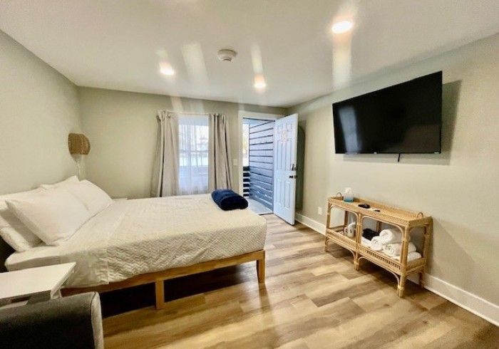 Stay in our newly renovated efficiency room, just steps from the Carolina Beach boardwalk. Enjoy a comfortable queen bed, stylish decor, and convenient amenities like a mini-fridge, microwave, and Keurig coffee maker. Watch your favorite shows on the smart TV and freshen up in the large walk-in shower. With the beach just 2 blocks away, it’s the perfect place to relax and enjoy your coastal getaway.